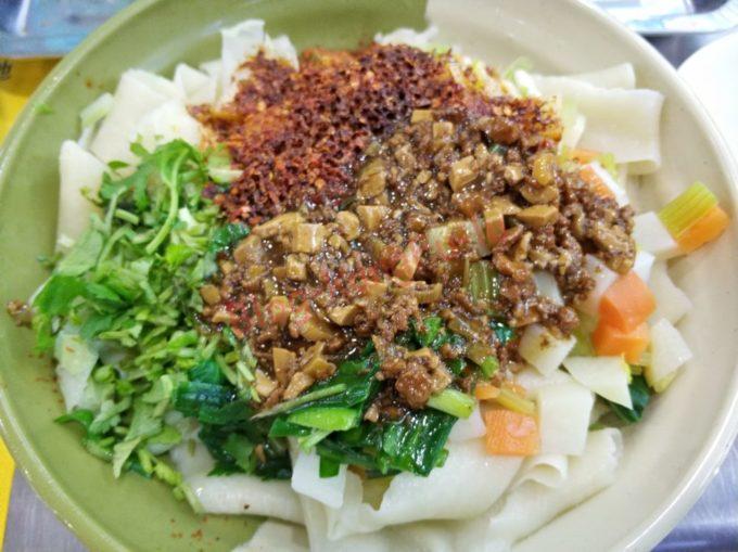 このような幅広の麺を見ると、西安通の方は西安名物の麺「biangbiang面(ビャンビャン麺)」をご想像される方も多いでしょう。