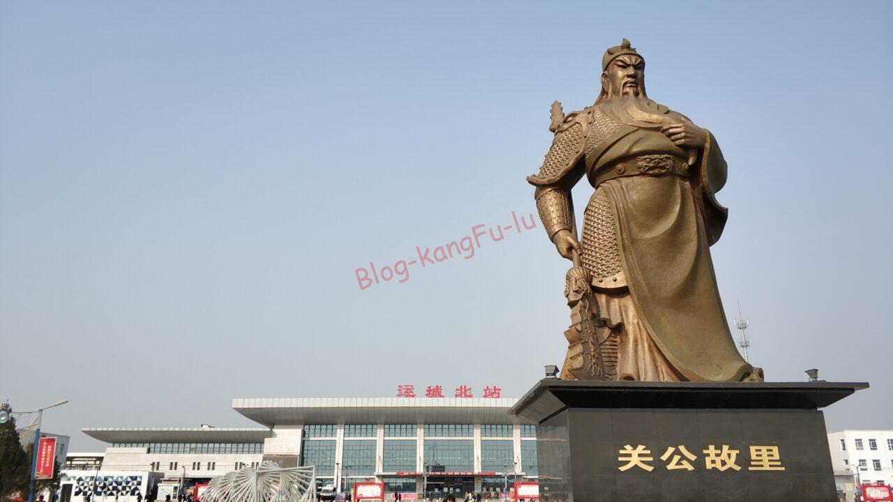 駅前の広場。関羽の雄々しい銅像が鎮座しています。