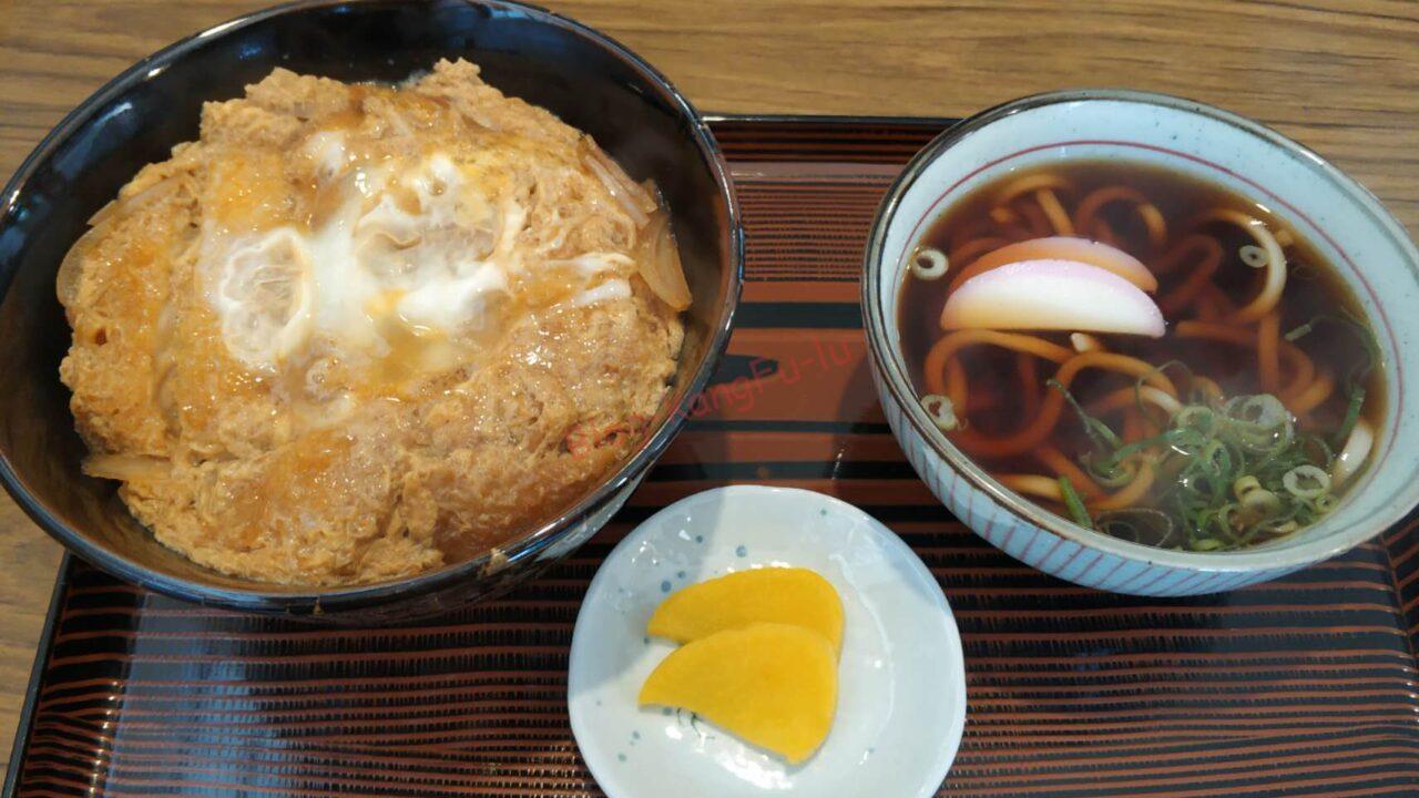 おうどんは細口でカツ丼の重厚さに反発しないようあえてひかえめな細口のもの。