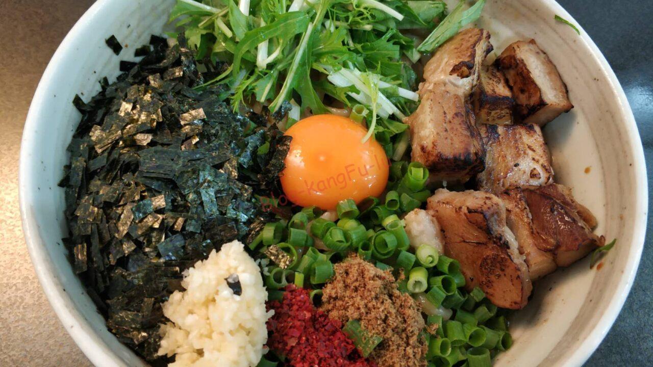なんか片っ端からマヨネーズだのチーズだの肉味噌だの天かすだのフライドオニオンだのをゴテゴテと混ぜ合わせて食べるスタイルが、麺そのものの美味しさを打ち消してしまっているような感じがするんですよね、、、